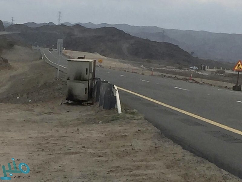 ويقع الجهاز المحترق بالقرب من شركة المواصلات بمنطقة مليّح؛ حيث تبلغ السرعة المقررة 100 كم في الساعة.