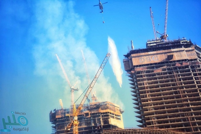 وبحسب المتحدث الإعلامي للدفاع المدني بمنطقة مكة المكرمة العقيد محمد بن عثمان القرني أن عمليات 911 تلقت بلاغ في تمام التسعة 5:20 صباحاً مفاده وجود حريق في أعلى برج تحت الإنشاء وعلى الفور جرى تحريك الفرق اللازمة والمعدات المساندة لموقع الحادث حيث شاركت عدد ٢٤ فرقة إطفاء وانقاذ و٤ آليات سلالم وكذلك عدد ٣ وحدات المباني العالية كما تم الاستعانة بطيران الأمن في عمليات المكافحة في أعلى البرج وأوضح القرني أن الحادث عبارة عن احتراق في الدورين العلوية والتي يوجد بها سقالات معدنية ( قوالب معدنية) وتمكنت الفرق من الوصول إلى نقاط الحادث واحتوائه والعمل على منع امتداده.