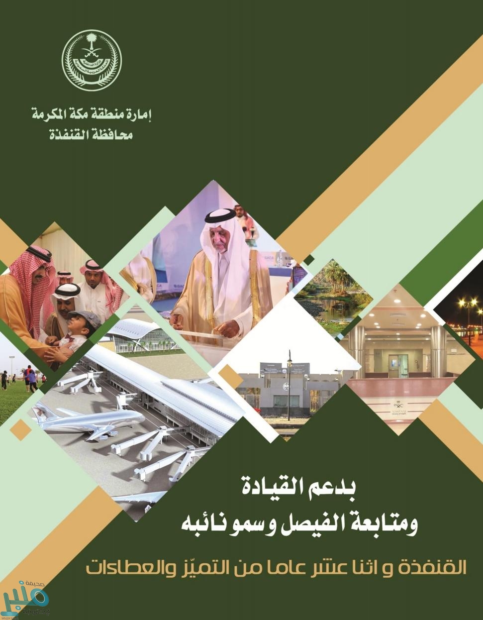 وجاء الإصدار في 124 صفحة تحدثت عن المشاريع والتنمية في المحافظة على مدار 12 عامًا، وافتتحه سعادة محافظ القنفذة بكلمة، قال فيها إن التنمية التي شهدتها القنفذة كانت بمتابعة مستمرة من سمو الأمير خالد الفيصل، ووقوفه على احتياجات القنفذة، مثل غيرها من بقية محافظات مكة المكرمة، مؤكدًا أن زياراته السنوية مهدت لهذه التنمية، بمساعدة سمو نائبه سابقًا الأمير عبدالله بن بندر، وسمو نائبه حاليًا الأمير بدر بن سلطان، وكل ذلك بدعم كبير من قيادتنا الحكيمة.