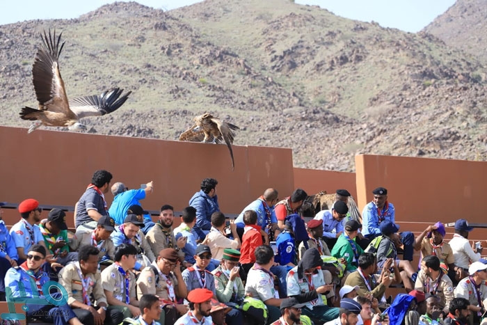 كما شاهد الجوالة عرض حيّ لمجموعة من الطيور الجارحة؛ مثل البومة البيضاء، وعُقاب الأفاعي، والشاهين، والعقاب المنقط الكبير، والنسر ذي الوجه المجعد، كما حظي المشاركين برحلة اكتشفوا فيها مع مرشدي المركز عالم الطيور الجارحة وتعرفوا عليها عن قرب بأنواعها وفصائلها، وما يميز كل طائر عن الآخر، كأساليب معيشته، وطرق تكاثره، والمهدد منه بالانقراض.