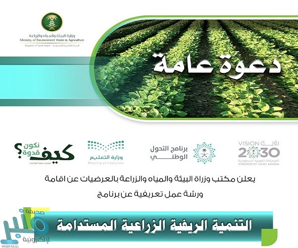 يقيم مكتب وزارة البيئة والمياه والزراعة بالعرضيات ورشة عمل تعريفية عن برنامج التنمية الريفية الزراعية المستدامة.