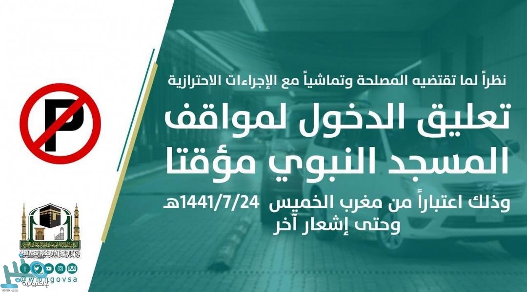 تبدأ وكالة الرئاسة العامة لشؤون المسجد النبوي اليوم , تعليق دخول المركبات إلى المواقف أسفل المسجد النبوي.