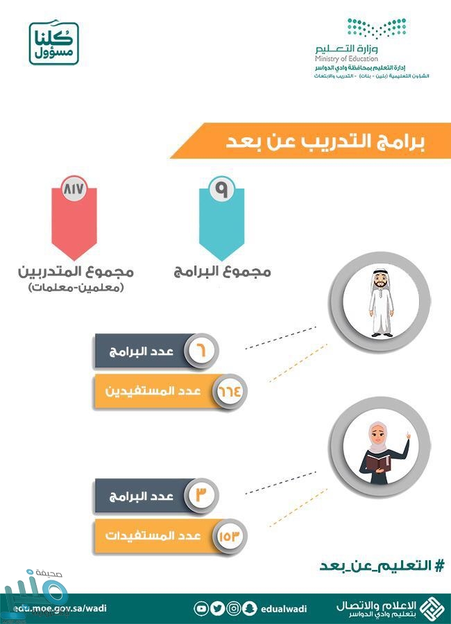 التعليم > 814 متدربًا ومتدربة يستفيدون من برامج التدريب عن بعد بتعليم وادي الدواسر