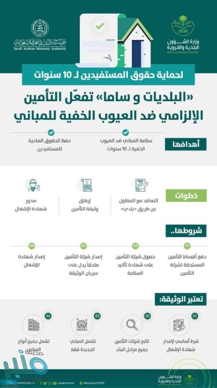 أوضحت وزارة الشؤون البلدية والقروية أن وثيقة التأمين الإلزامي للمباني الإنشائية التي أُقرّت من مؤسسة النقد العربي السعودي سيتم تطبيقها بشكل تدريجي مع تطبيق كود البناء السعودي.