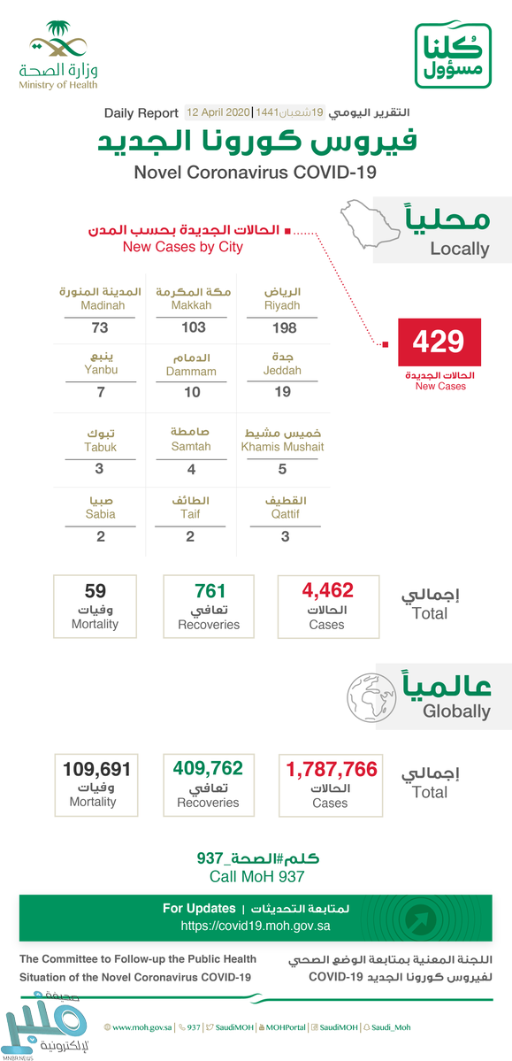 #عاجل_السعودية | المتحدث الرسمي باسم #وزارة_الصحة د. محمد العبدالعالي: سجلت المملكة 429 حالة جديدة، ليصل الإجمالي في المملكة 4462 حالة.#كلنا_مسؤول pic.twitter.com/wgulN0ZZxa