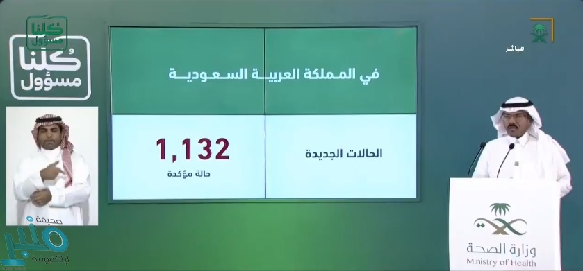 وأعلن ” العبدالعالي” عن تسجيل (1132) حالة جديدة بفيروس كورونا المستجد ( كوفيد 19) وذلك خلال الـ 24 ساعة الماضية، وبهذا يصل العدد الاجمالي لجميع المصابين في المملكة (8274 ) ، من بينهم (6853) حالة نشطة،معظمها مستقرة فيما لاتزال ( 78) حالة حرجة تتلقى الرعاية الصحية المركزة.