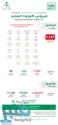 أعلن المتحدث باسم وزارة الصحة، محمد العبد العالي، اليوم الثلاثاء، عن تسجيل 1147 إصابة جديدة بفيروس كورونا (كوفيد-19) خلال الـ24 ساعة الماضية في المملكة.