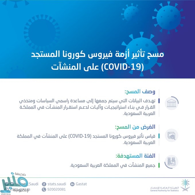 أخبار > «الإحصاء» تبدأ «مسح كورونا» وتدعو القطاع الخاص للمشاركة