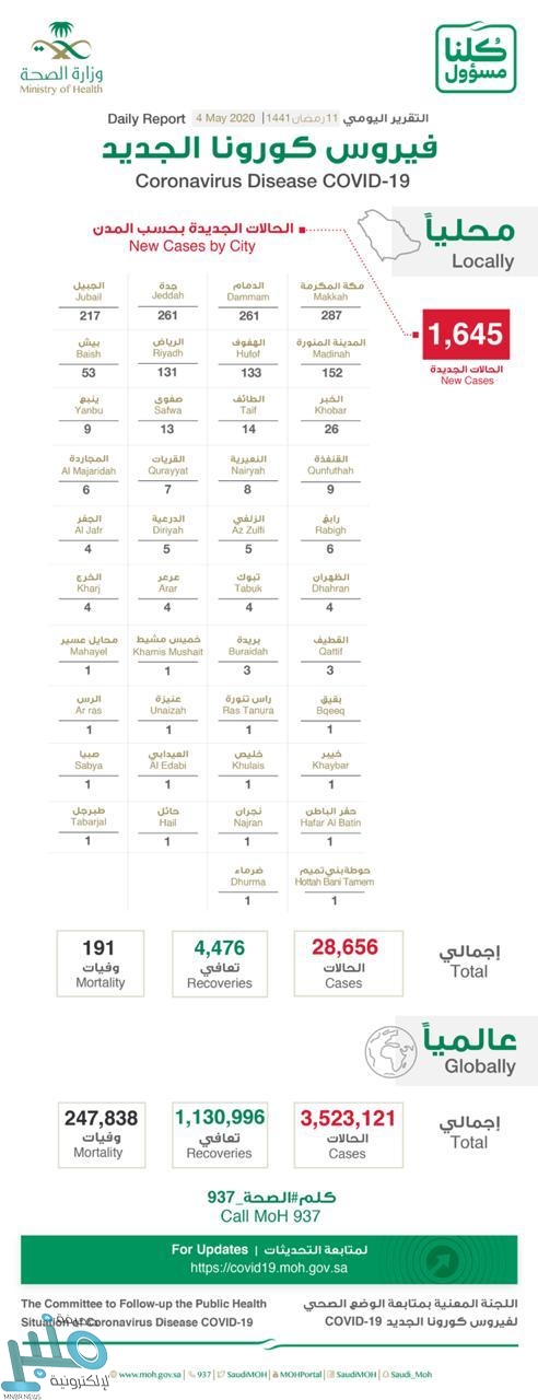 فيديو | متحدث #الصحة: تسجيل 1645 حالة جديدة مصابة بفيروس #كورونا توزعت في مختلف مدن ومناطق #المملكة#الإخبارية#كلنا_مسؤول pic.twitter.com/0naShbxBuM