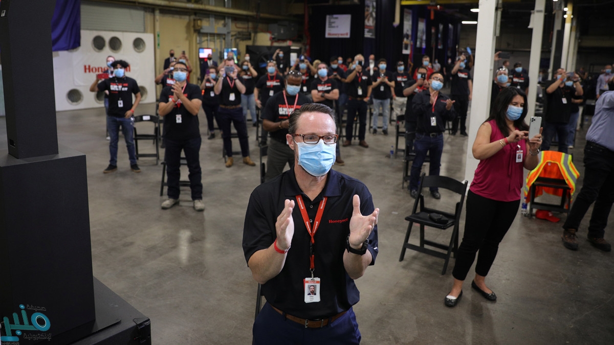 وظهر ترامب وهو يخاطب العمال ويشجعهم على ما يؤدونه من جهد عظيم، وهو يرتدي نظارة واقية بينما لا يرتدي كمامة رغم وجوده في المكان الأبرز لصناعتها في الولايات المتحدة.