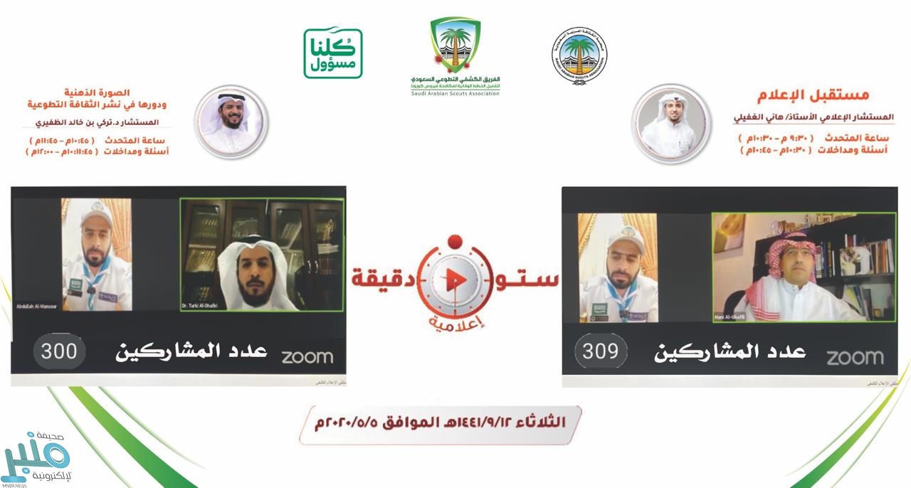 واصل المُلتقى الكشفي الإعلامي ” ستون دقيقة إعلامية”, الذي تنظمه جمعية الكشافة العربية السعودية افتراضيا فعالياته بعقد جلساته التي استهلها بجلسة بعنوان “مستقبل الاعلام” قدمها المستشار هاني الغفيلي تناول فيها الوضع الراهن للإعلام ، وطرح تساؤلات حول مستقبل الاعلام ، ولمحات عن سماته وبعض التوجهات المستقبلية واستعرض آراء بعض الخبراء ، والجوانب الاخلاقية والاجتماعية ، كما تناول مرحلة الاعلام الرقمي واهم التحديات التي تواجه الاعلاميين، واحصائيات حول استخدام الشبكات والوسائط في المملكة .