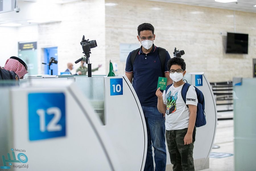 وفور وصول المواطنين إلى مطار الملك خالد الدولي بالرياض، طبقت كافة التدابير الصحية والوقائية من فيروس كورونا المستجد (كوفيد- 19)، كما اتخذت الجهات الحكومية ممثلة في (وزارة الخارجية، ووزارة السياحة، ووزارة الصحة، والهيئة العامة للطيران المدني) العديد من الخطوات والإجراءات والتدابير الوقائية، وتضمنت (12) مرحلة يتم تطبيقها منذ وصول المواطنين إلى مطار بلد المغادرة وحتى وصولهم مطارات المملكة وخروجهم منها، حيث يتم في المرحلة الأولى الكشف الطبي على الركاب في مطار بلد المغادرة، قبل صعودهم إلى الطائرة التي روعي فيها ضمان وجود مساحات بين الركاب، وعند وصول الرحلة إلى مطارات المملكة اتخذت هيئة الطيران المدني الإجراءات التي يتم من خلالها نزول الركاب من الطائرة بطريقة مقننة لضمان عدم الاصطفاف المتقارب والانتشار داخل صالات السفر، بالإضافة إلى توفير منطقة تعقيم عند بوابة جسر الاركاب، كما قامت وزارة الصحة بتخصيص نقطة فحص يتم من خلالها مرور جميع الركاب القادمين لأجهزة الكاميرات الحرارية الإلزامية للتأكد من سلامة المسافرين، وعند الاشتباه بوجود حالة بين الركاب يتم عزل الراكب عن باقي الركاب من ثم تفعيل المسار الآمن لنقل الحالة، ويلزم على الركاب تعقيم اليدين قبل البدء في إجراءات الجوازات وبصمة الدخول، وفي منطقة تفتيش الجمارك يتم المحافظة على مسافة (1.5م) على الأقل بين موظف الجمارك والراكب، كما سيتم مساعدة الركاب في منطقة مناولة الأمتعة.