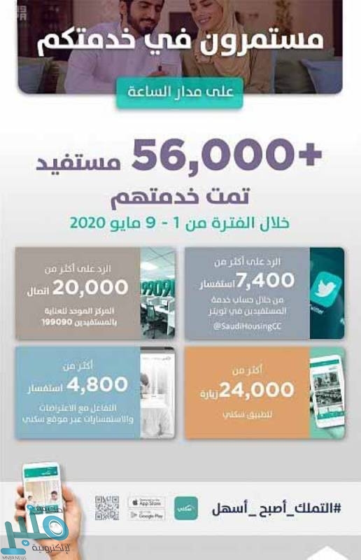 أخبار > “سكني”: أكثر من 56 ألف تفاعل مع المواطنين عبر المنصات الرقمية خلال الأسبوع الماضي
