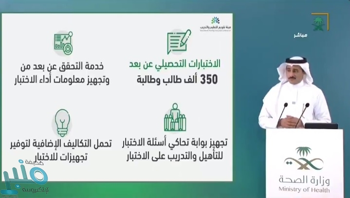 وأضاف: “للتجهيز للاختبارات عن بُعد أطلقت الهيئة خدمة توثيق معلومات المختبر اللازمة لأداء الاختبار والتي كانت تقدم مسبقًا بالحضور إلى مقرات الاختبارات وهذا الإجراء للحفاظ على أمن الطلاب وسلامتهم لتقديم الخدمة لهم في منازلهم”.
