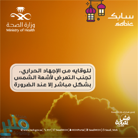 الصحة عدداً من النصائح للصائمين خلال شهر رمضان المبارك وذلك ضمن حملتها “صم بصحة” التي أطلقتها بالتعاون مع سابك.