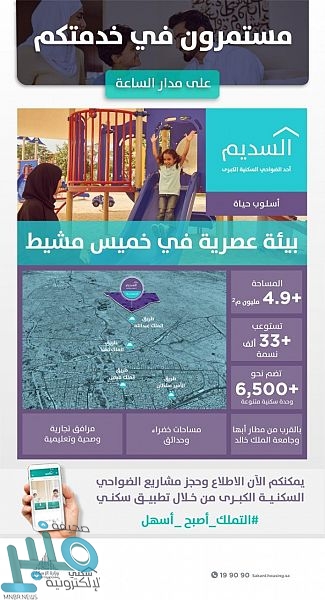 سجَّلت ضاحية السديم – إحدى المشاريع الكبرى لبرنامج سكني التابع لوزارة الإسكان – والواقعة في مدينة خميس مشيط، نسب حجوزات عالية تجاوزت 60% من الوحدات المتاحة حالياً، ويستمر حجز باقي الوحدات عبر تطبيق وموقع سكني الإلكتروني ضمن إجراءات سهلة تختصر الوقت والجهد واستحقاق فوري للأسر السعودية الراغبة في التملك بالاستفادة من خيارات السكنية والحلول التمويلية المتنوعة إلكترونياً بهدف زيادة نسب التملك إلى 70% بحلول 2030.