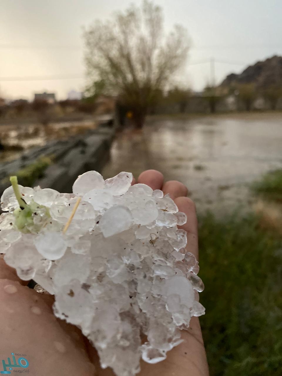 وشملت الأمطار قرية حلفن التابعة لمركز الويد في محافظة العرضيات، ونتج عنها جريان السيول في الأودية والشعاب وتساقط البرد الذي كسا بعض المواقع بكميات كبيرة.