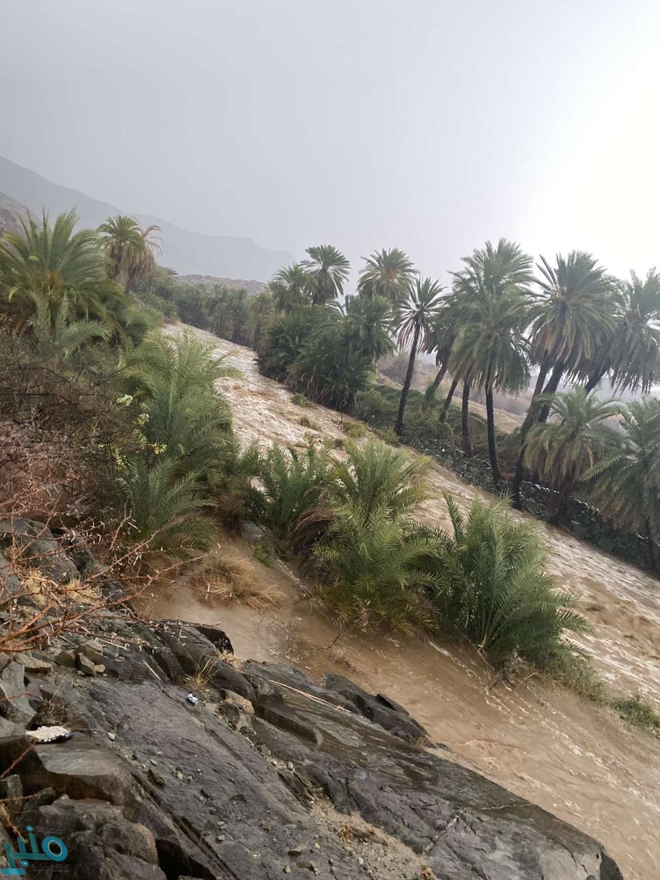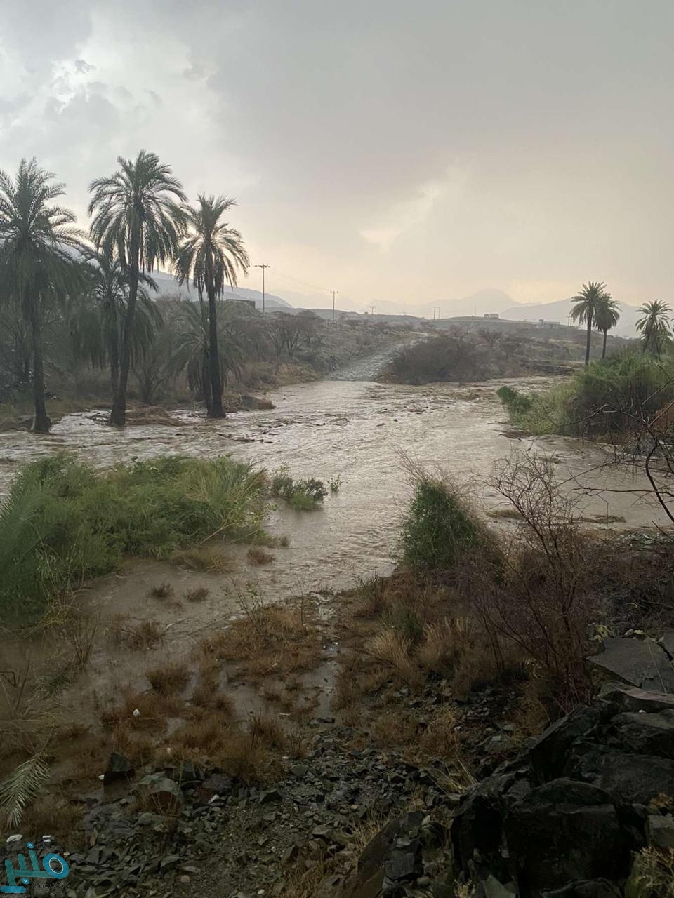كما شهدت محافظة العرضيات أمطارًا غزيرة إلى متوسطة لليوم الثاني على التوالي، سالت على إثرها بعض الأودية والشعاب، وارتوت المزارع، وأسهمت في تلطيف الجو.