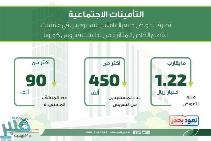 أعلنت المؤسسة العامة للتأمينات الاجتماعية، عن صرف تعويض دعم العاملين السعوديين في منشآت القطاع الخاص المتأثرة من تداعيات فيروس كورونا.