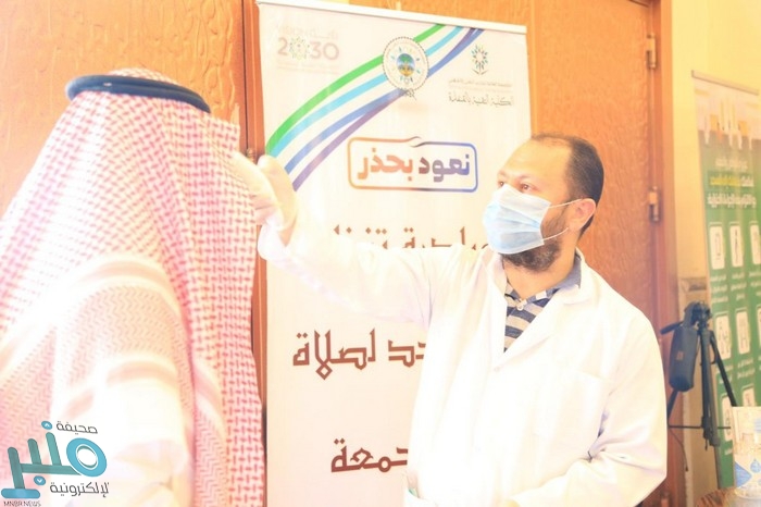 واشتملت المبادرة على (فحص المصلين، وتعقيم أيديهم أثناء الدخول والخروج، وتوزيع كمامات، وتوزيع سجادات على المصلين الذين ليس لديهم سجادات، وإحضار طبيب العيادة الصحية بالكلية).
