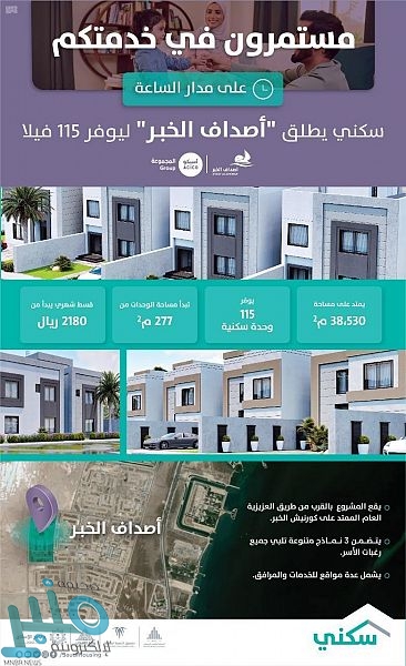 وأوضح “سكني” أن مشروع “أصداف الخبر” يقع في حي العزيزية جنوب الخبر بالقرب من طريق العزيزية العام الممتد على كورنيش الخبر، كما يُنفذ المشروع على عدة مراحل، ويضم ثلاثة نماذج بمساحات مختلفة تراعي احتياجات الحياة العصرية ومتطلبات الأسرة السعودية بنمط عمراني حديث يضمن تلبية متطلبات جودة الحياة.