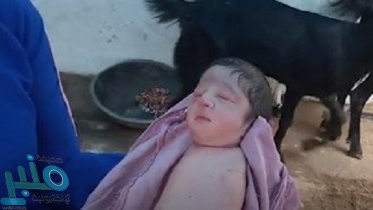 وفي الفيديو ظهرت الطفلة بين ذراعي امرأة تحملها وهي ملفوفة بقطعة قماش، وتبين غياب اليدين والساقين.
