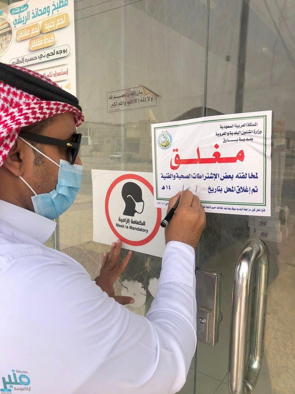 أغلقت بلدية محافظة بارق ممثلة في قسمي صحة البيئة ورقابة الأسواق مطبخ وستة محلات مهنية مخالفة.