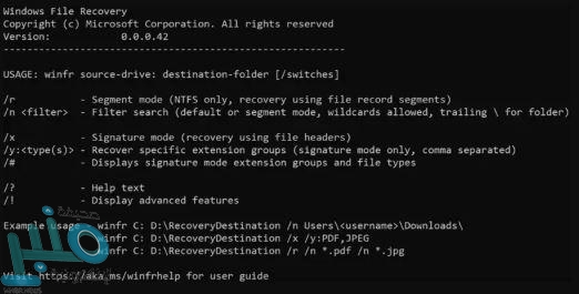 الجدير بالذكر أنه يجب عليك استخدام أداة (Windows File Recovery) بسرعة بعد اكتشاف حذف الملف أو المستند حتى تتمكن من استعادته بنجاح، لأن البيانات التي تُحذف من وسائط التخزين تكون قابلة للاستعادة فقط قبل أن تُخزن فوقها أي بيانات أخرى.