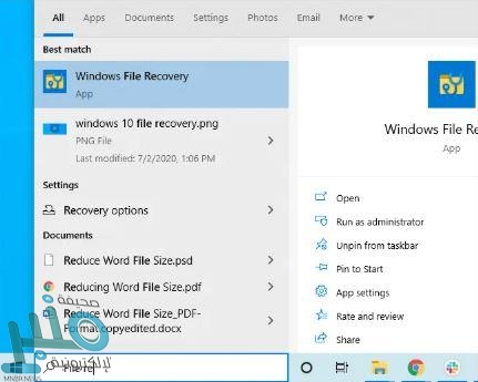 بمجرد تثبيته؛ افتح قائمة ابدأ وابحث عن (File Recovery)، ثم اضغط عليه لتشغيله.