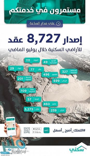 أخبار دولية > أخبار إقتصادية > سكني: إصدار 8727 عقدًا إلكترونيًا للأراضي السكنية خلال يوليو الماضي