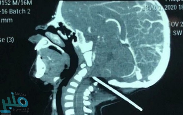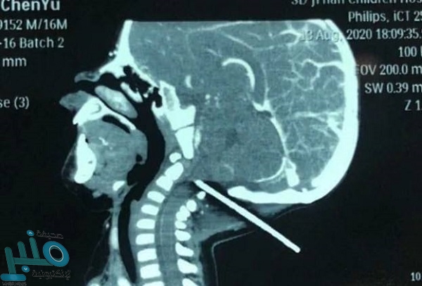 نجا صبي صيني من الموت بأعجوبة، بعد أن اخترق قضيب حديدي الجزء الخلفي من جمجمته خلال حادث منزلي.