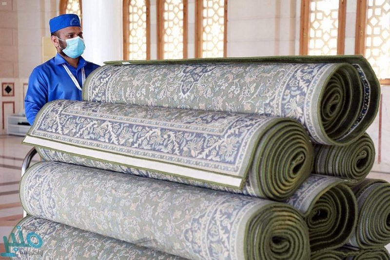 وبيّنت الوكالة أنه سيتم فرش 7000 سجّادة في التوسعات والساحات ابتداءً من صلاة الفجر غرة شهر محرم لعام 1442هـ, بواقع ثلاثة مصلين على السجّادة الواحدة بمسافة 180 سم بين كل مصلٍ وآخر.