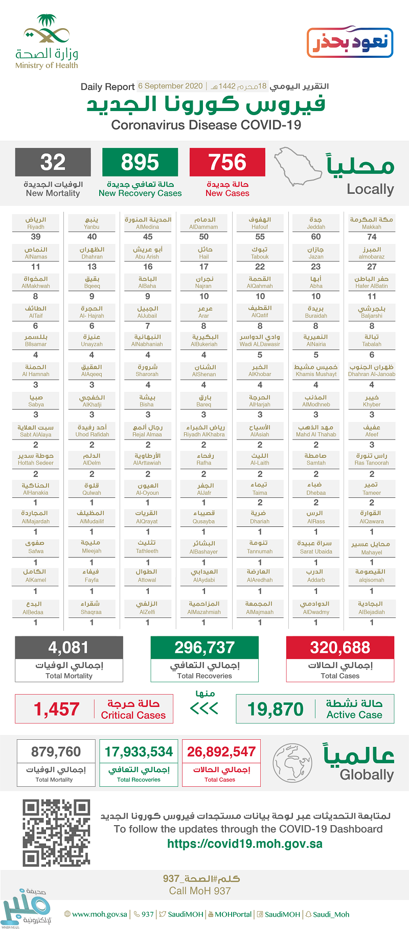 كما تم تسجيل 895 حالة تعافي جديدة ، ليصل مجموع المتعافين إلى 296737 حالة.