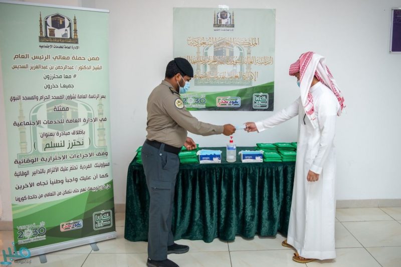 أطلقت الرئاسة العامة لشؤون المسجد الحرام والمسجد النبوي ممثلة بالإدارة العامة للخدمات الاجتماعية أمس مبادرة ” نحترز لنسلم”، والتي جاءت تماشياً مع الإجراءات الاحترازية والوقائية التي اتخذتها الرئاسة العامة للحد من تفشي فايروس كورونا.