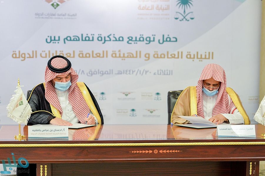 وقع معالي النائب العام الشيخ سعود بن عبدالله المعجب مع معالي محافظ الهيئة العامة لعقارات الدولة الأستاذ إحسان بن عباس بافقيه بمقر النيابة العامة بالرياض اليوم مذكرة تعاون تهدف إلى تعزيز التعاون وتطوير آليات العمل المشتركة.