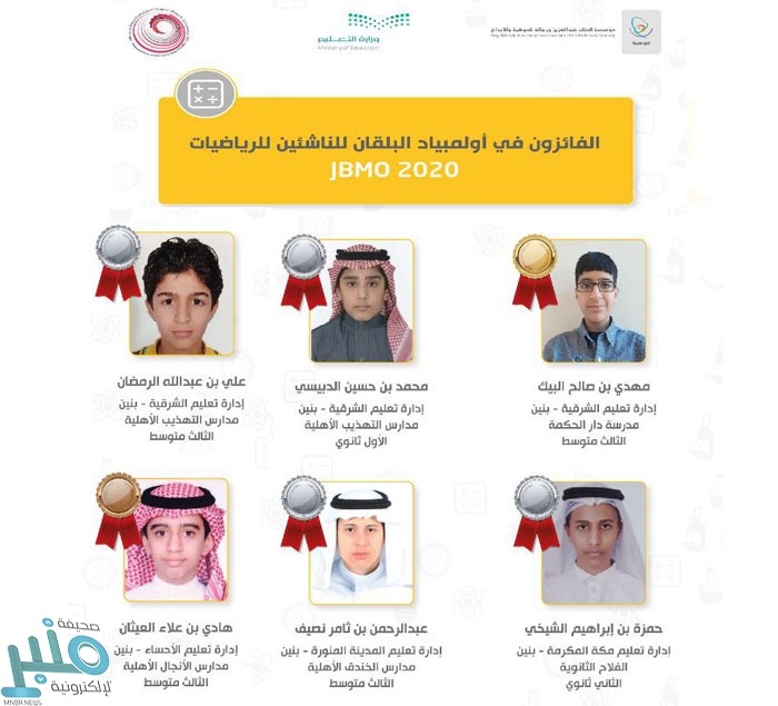 حقق 6 طلبة سعوديون من طلبة مؤسسة الملك عبدالعزيز ورجاله للموهبة والإبداع “موهبة” بالشراكة مع وزارة التعليم إنجازًا غير مسبوق في أولمبياد البلقان للناشئين للرياضيات 2020 الذي نفذ هذا العام “عن بعد” بسبب جائحة كورونا، وذلك بفوز جميع أفراد الفريق السعودي بـ 6 ميداليات، (ميدالية ذهبية واربع فضيات وميدالية برونزية )، حيث حقق الفريق السعودي المركز الثالث على مستوى 18 دولة مشاركة كثير منها متقدم بمجال الرياضيات مثل فرنسا.