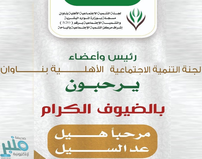 تستقبل لجنة التنمية الاجتماعية الأهلية بناوان اليوم الأحد الموافق 1442/2/3 هـ في تمام الساعة الرابعة عصرًا في مقر ديوانية الآباء والشباب المرشحين لإدارة اللجنة في دورتها الثانية لعام ١٤٤٢هـ، حيث يتسع مقر الديوانية الجديد التى تم تجهيزها حديثاً قرابة الـ٦٥ مرشح الذي تم الرفع بأسمائهم إلى مركز التنمية الاجتماعية بمنطقه الباحة، حيث تم الاتفاق على الموعد المحدد أعلاه.