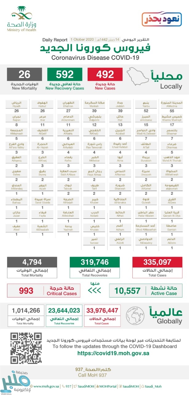 كما تم تسجيل 592 حالة تعافي جديدة ، ليصل مجموع المتعافين إلى 319746 حالة.