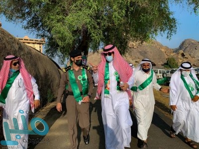 برعاية من سعادة محافظ المخواة نايف الهزاني وبمشاركة عدد من الجهات الحكومية في المحافظة نظم اهالي جبل شدا الاسفل اليوم الجمعة “هايكنج “احتفالا باليوم الوطني التسعين شارك فيه ٣٢ شابا من مشاة جبل شدا يتقدمهم المحافظ وقد روعي في التنظيم الاشتراطات الصحية الواجب اخذ الاعتبار بها وقد بدات المسيرة من قرية عقال الى الهرير في قرية الاشراف .