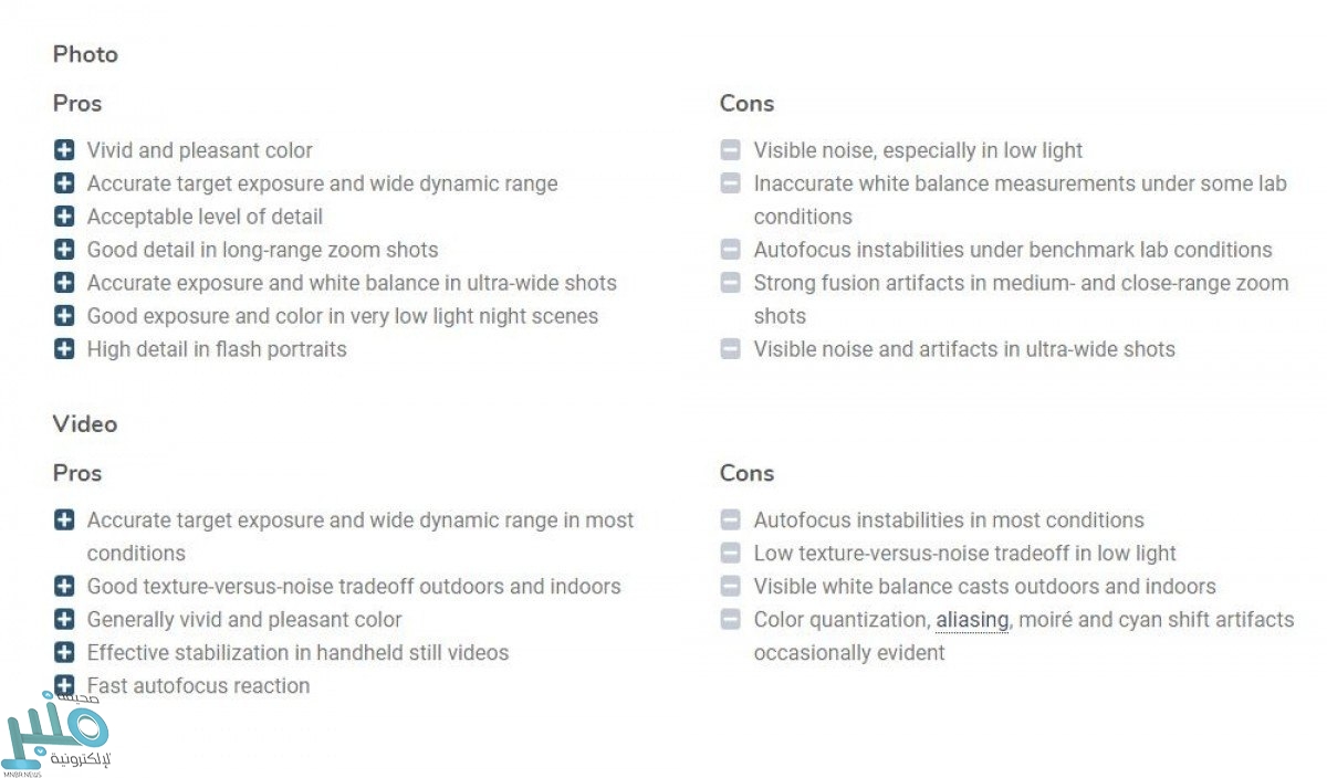 وبالنسبة للكاميرا والفيديو، جاء الهاتف خلفًا للهواتف الرئيسية الأخرى مثل ”Galaxy S20 Ultra“ و ”Xiaomi Mi 10 Ultra“ و ”iPhone 11 Pro Max“.