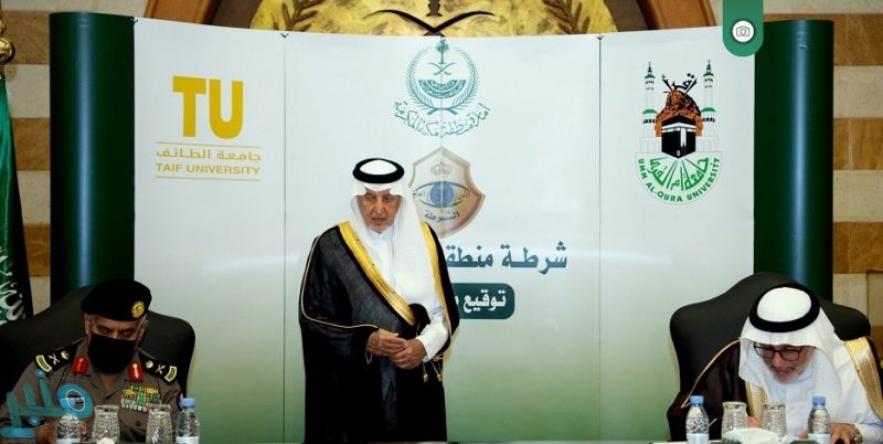 شهد صاحب السمو الملكي الأمير خالد الفيصل مستشار خادم الحرمين الشريفين أمير منطقة مكة المكرمة، في مقرالإمارة، توقيع مذكرات تعاون بين جامعتي أم القرى والطائف وشرطة المنطقة.