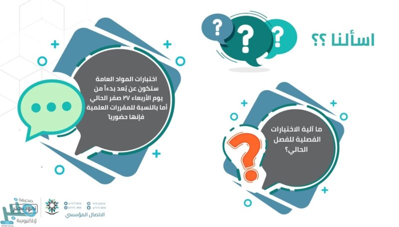 وأكدت التدريب التقني، أن اختبارات المواد العامة للفصل الأول ستكون عن بُعد، على أن تبدأ يوم الأربعاء 27 صفر الجاري.