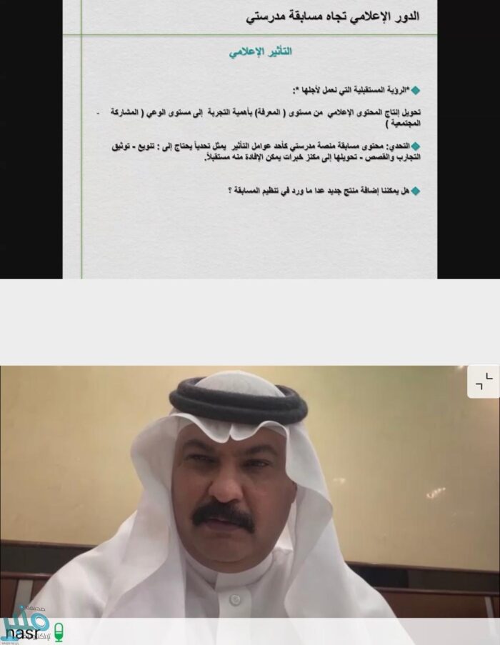 وختم بأن جعل محتوى مسابقة منصة مدرستي أحد عوامل التأثير يمثل تحدياً مبيناً أنه يحتاج إلى تنويع توثيق التجارب والقصص تحويلها إلى مكنز خبرات يمكن الإفادة منه مستقبلاً.