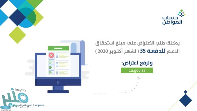 وأعلن الحساب في تغريدة على حسابه بموقع “تويتر” أنه بدأ باستقبال طلبات الاعتراض على مبلغ استحقاق الدعم للدفعة 35 وذلك من خلال البوابة الإلكترونية على الرابط: أضغط هنا.