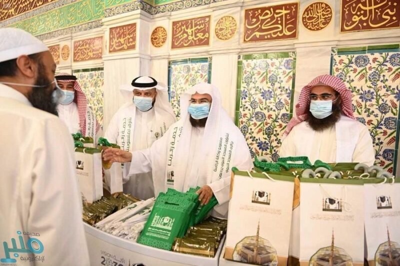 وشارك الرئيس العام لشؤون المسجد الحرام والمسجد النبوي الشيخ في توزيع الهدايا على زائري المسجد النبوي ضمن الحملة.
