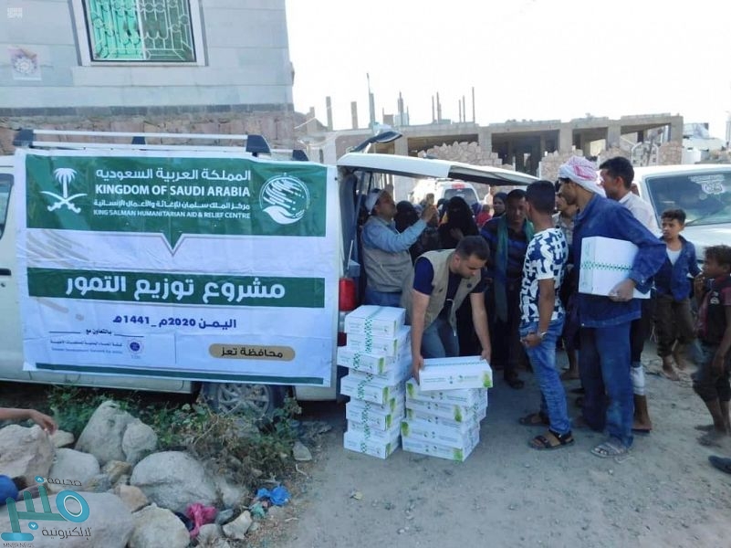 مركز الملك سلمان للإغاثة يوزع 1,000 كرتون من التمور للأسر النازحة والمتضررة في تعز