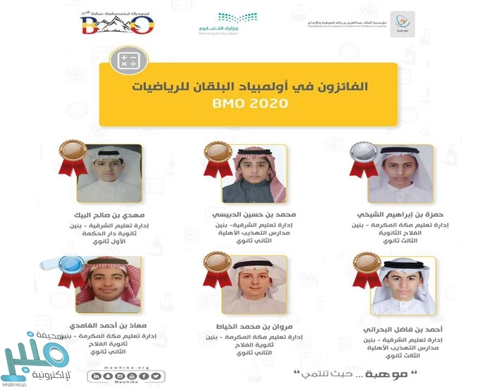 نجح 6 من طلاب التعليم بالشراكة مع “موهبة” في الفوز بـ6 جوائز دولية في أولمبياد البلقان للرياضيات الذي أقيم عن بعد، خلال الفترة من 31 أكتوبر حتى 5 نوفمبر 2020م، والذي يعد من أعرق المسابقات على مستوى العالم، لتقترب بهذا العدد من ملامسة 400 فوز دولي طيلة 10 سنوات في جميع المسابقات.