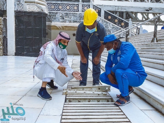وبين خوج أن هذه الخدمات والجهود بإشراف وتنظيم من الإدارة العامة للشؤون الفنية والخدمية التابعة لوكالة الشؤون الفنية والخدمية، وبمتابعة مستمرة من قبل سعادة وكيل الرئيس العام للشؤون الفنية والخدمية الأستاذ محمد بن مصلح الجابري، تنفيذاً لتوجيهات معالي الرئيس العام لشؤون المسجد الحرام والمسجد النبوي الدكتور عبدالرحمن بن عبدالعزيز السديس، تحقيقاً لتطلعات القيادة الرشيدة -أيدها الله- في توفير اجواء آمنة ومطمئنة ليؤد قاصدو الحرمين الشريفين مناسكهم بسهولة ويسر.