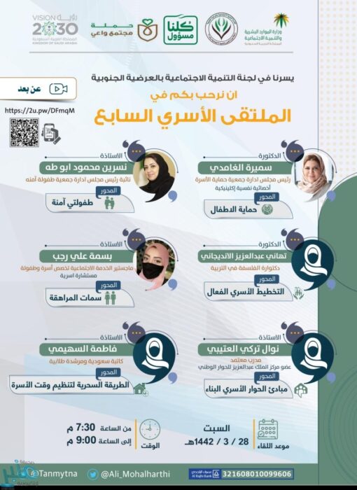 كما شاركت حسينة الغامدي بندوة توعوية عن أهمية تماسك الأسرة في ظل ظروف ومتطلبات العصر الحالي.