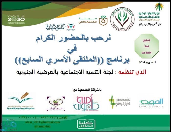 كما نفذ البرنامج افتراضيًا عن بعد بمشاركة العديد من الجهات المتخصصة في مجال الأسرة وحماية الطفولة عبر الشراكة المجتمعية مع هذه الجهات، وشارك في الملتقى الدكتورة سميرة الغامدي رئيس جمعية حماية الأسرة، ونسرين محمود أبو طه نائبة رئيس جمعية طفولة آمنة، والدكتورة تهاني عبدالعزيز الأنديجاني، وبسمة علي رجب المستشارة الأسرية، ونوال تركي العتيبي عضو مركز الملك عبدالعزيز للحوار الوطني، وفاطمة السهيمي الكاتبة والمرشدة الطلابية.